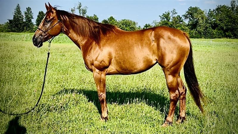 Hottie will give you her hip, shoulders, ribs, face SUPER BROKE with a lot of grit. She has Hottie will give you her hip, shoulders, ribs, face SUPER BROKE with a lot of grit. She has been running in the 1D and has run from 1D-3D for anyone not wanting to go fast and just wants a super nice horse she will slow up and cruise. We have hauled her to some rodeos and wouldn’t take much for her to be seasoned. My son won Glow in the dark barrels. She will trail ride anywhere. Started in poles. Does have a cosmetic blemish scar on left hock. PPE welcome @ buyer expense!