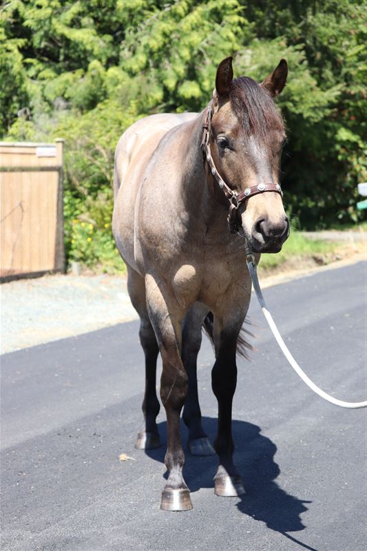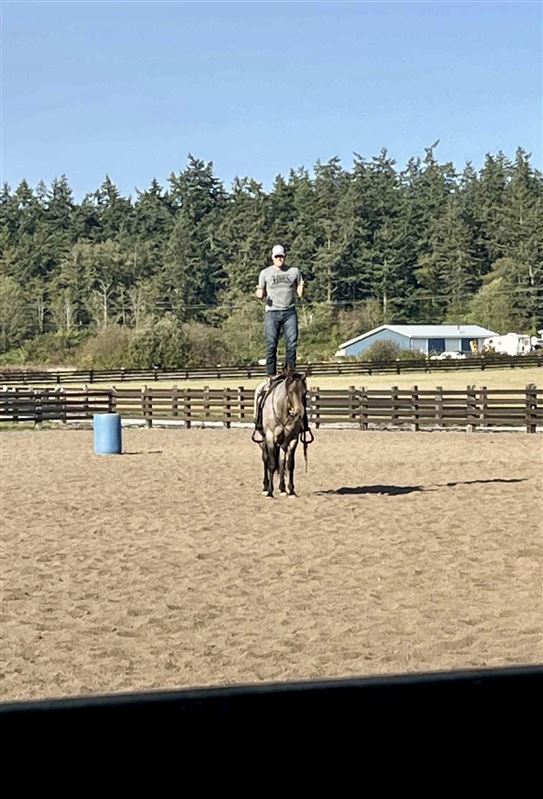 He has been hauled all over with both my other horses. He has an “in your pocket” personality and is first to the gate to greet you. Ground work in a round pen . Has been on 5+ hour trailer rides, backs out, picks up feet, stands for farrier, hobble trained, stands tied for hours at races, stalled over the weekend, can tie alone, bathes. Big solid feet. He is a cribber.