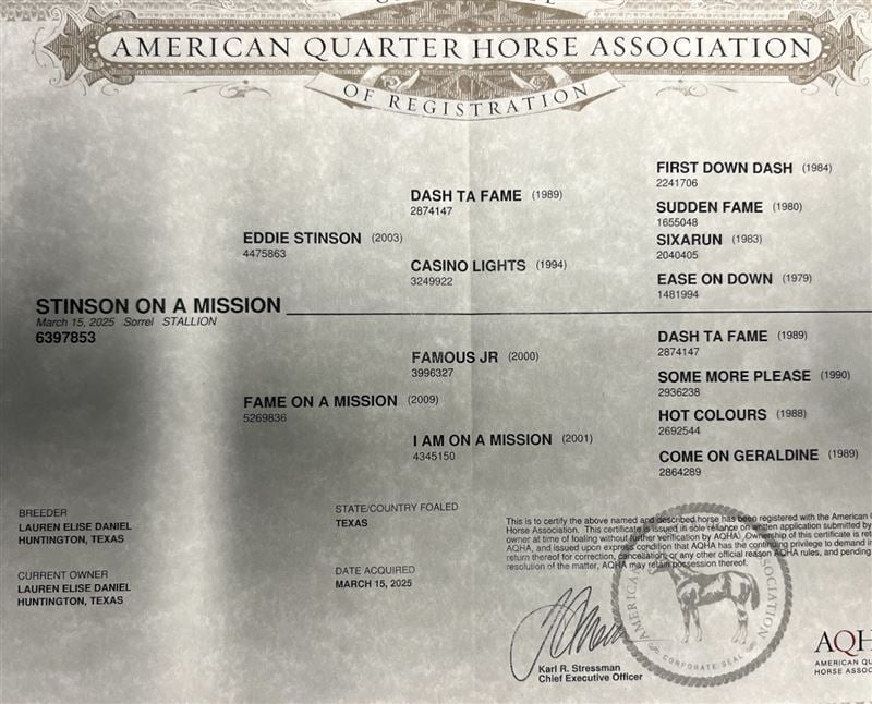 | Sire's Sire: DASH TA FAME | Sire's sire's sire FIRST DOWN DASH |
