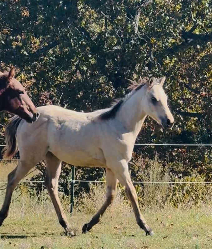 Flashy buckskin filly. She is put together right and well mannered. She has all the pedigree to win, including Streak of Fling, Sun Frost, Special Effort, Pc Bronsin, Corona Cartel. Out of 1D mare. Someone needs to bring her home soon, she is really a sweet filly and with a great temperament. She is quickly becoming one of my favorites and watching her outrun all the others, I’m wishing we had room to keep her.