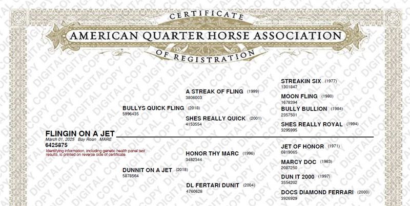 | Dam's Dam: DL Fertari Dunit | Dam's dam's Sire Dun It 2000 |