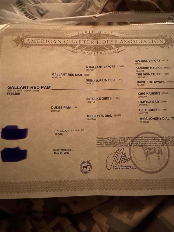 He is O/o Gallant Red Pam (gallant red man x Dukes Pam)