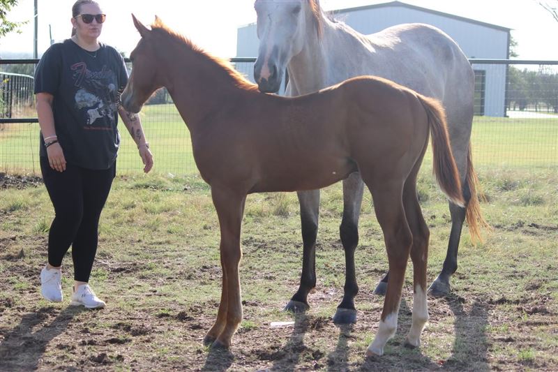 Dam has multiple nice money earning progeny! Sire is a JR stallion by Frenchman’s Fabulous. His Will is so nice I have another one of his foals coming in 2026! This colt is the real deal—athletic, well-built, and bred to win. He’s gunna be a big boy with big bone! Sweet, personable temperament and expected to mature 15hh+! Whether you keep him a stud prospect or make him a top-notch gelding, he’s ready to shine in the right hands. Weaned and ready to go!