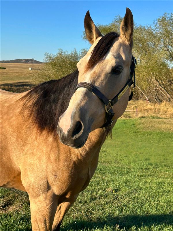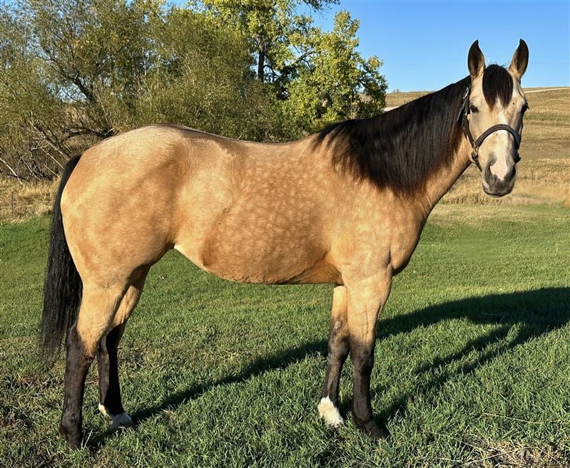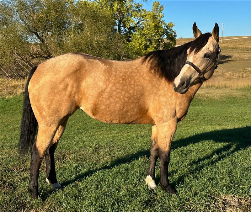 Miss Magnum just finished up her futurity year. She was consistently in the 1D of the futurities and 1/2D of the opens. She placed in the 5 State Breeders Futurity Avg, Dash N Dance Futurity Avg, OutsideIn Futurity Avg, MN Futurity Avg and several round placings as well. She tries super hard and is the kindest and honest mare I’ve rode. She hit 1 barrel all year. She runs barefoot, has ran with shoes as well. Some light maintenance. She is started on the poles but has never been entered.