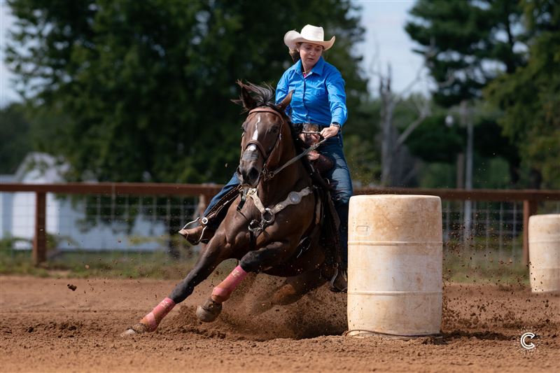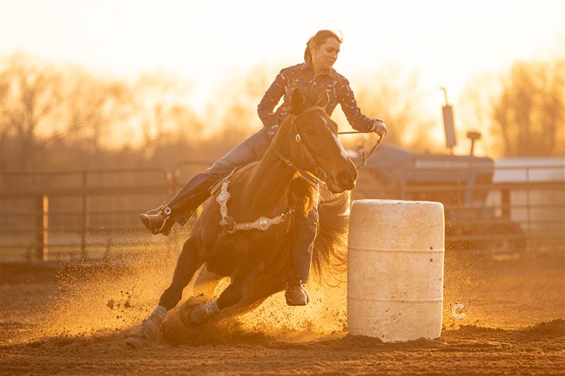 She’s correct and has nice papers — would also be a great broodmare prospect. She enjoys being around other horses (mares and geldings) and has been good in different hauling and stalling situations. No buddy sour issues. Requires regular maintenance (back & hock injections) and front shoes year-round. Not youth/beginner-suitable, but a great fit for a quiet, confident rider. She's loped through the poles a few times and seemed to take to it pretty quickly.