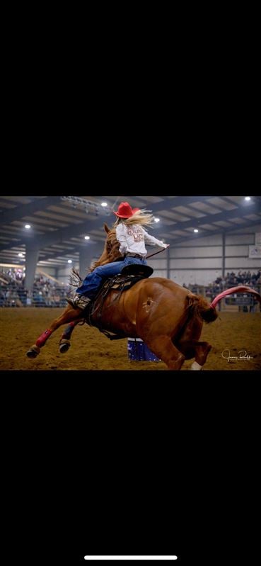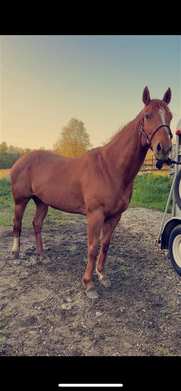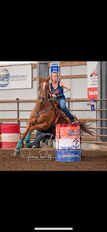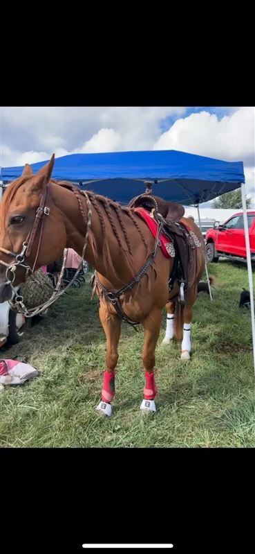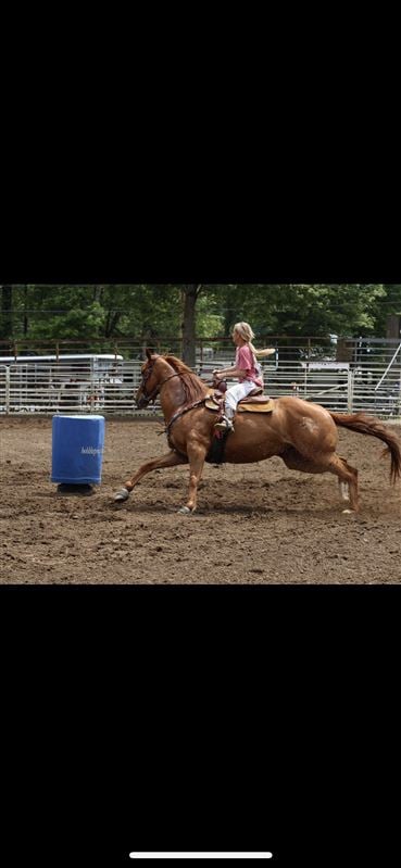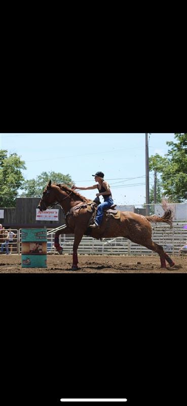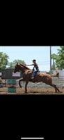 Joe is a 12 year old off the track registered quarter horse mare. She is a big girl at 16 hands! She is a 2D3D horse with potential 1D with the right rider. She is a big mare with a BIG motor and requires an experienced rider.