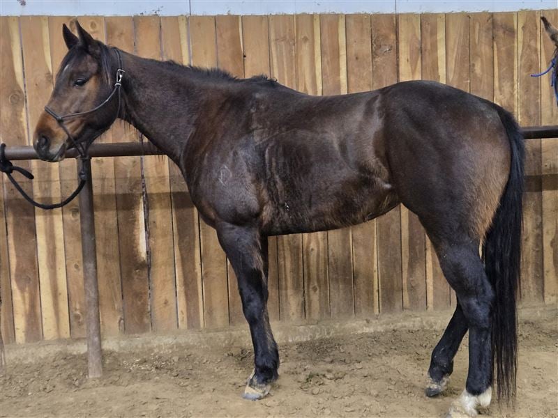 She hauls great, nothing bothers her, great with kids, scooters, trains, you name it. She's in your pocket, loves people, easy to catch, bath, and load. Good to shoe, but I run her barefoot. UTD on everything.