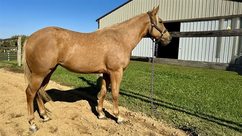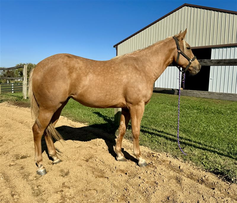 This filly is lightly started under saddle. She’s had about 20 rides thus far. She is quiet, willing, and soft in the face. This filly has the pedigree and talent it takes to be a winner.