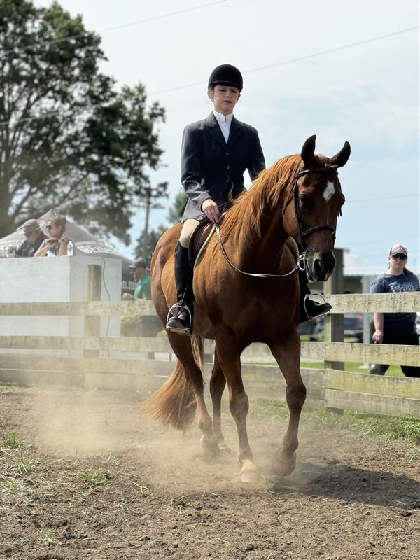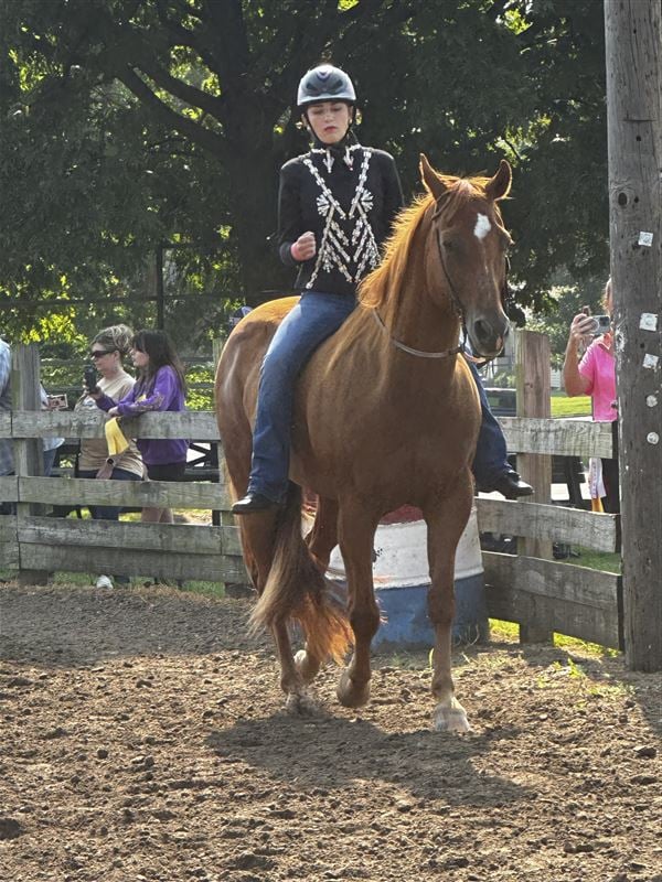 After a lot of thought we have made the very hard decision to offer my daughter’s best horse for sale. We will be very picky when choosing his next home, he deserves the best! Spoon is a 19 year old youth horse deluxe! He is an amazing barrel horse, he runs poles, he will do all the 4-h show classes, trail rides, he was previously a lesson horse, you name it he will do it! He has never had injections and the vet said all of his joints are in excellent condition not only for his age but for any age. He does require regular chiro to keep him feeling good. Up to date in vaccinations, feet, teeth and coggins. Spoon will go as fast as his rider wants him to, he is push style, he has a huge stride and covers a lot of ground and even though he is big and long strided he can still get around a barrel! Located in Oak Grove Mo