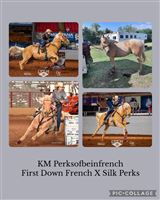 KM Perksofbeinfrench - 2011 Palomino Gelding by First Down French. 2021 3rd Barrel Bash Guthrie APR Day 3 open 3D $390. 2022 3rd FAB Spring Classic FFRTN day 2 Open 3D $460, 2022 7th FAB Spring Classic day 2 open 3D $216. 2022 20th Ruby Buckle Central day 2 open 4D $407.