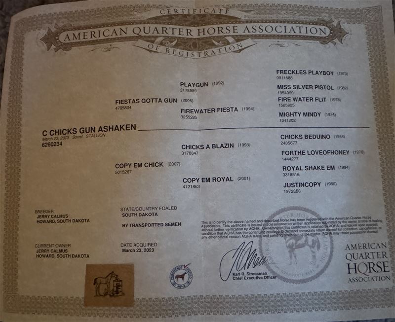 2023 15.3hh gelding by Fiestas Gotta Gun x AAA daughter of Chicks A Blazin
