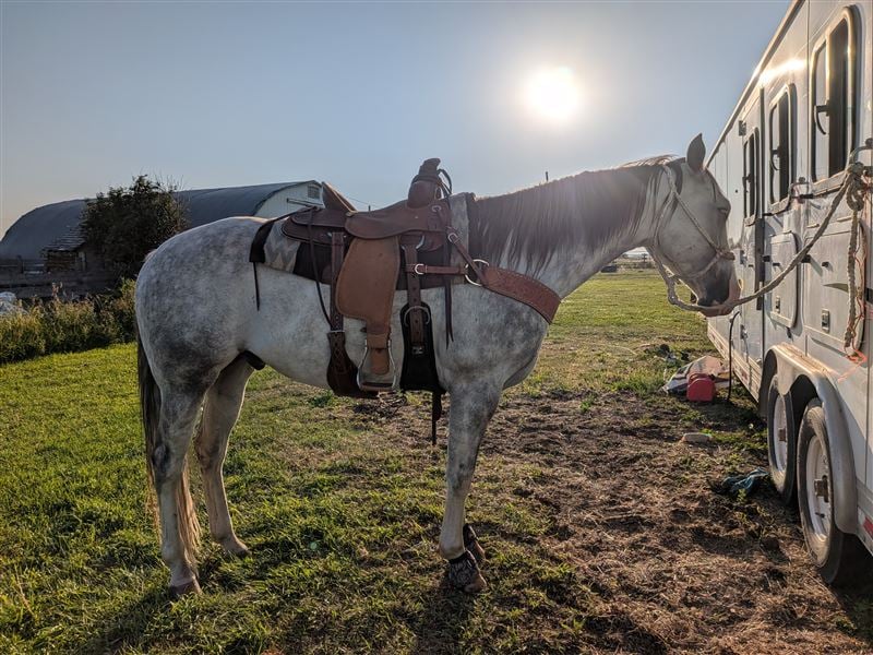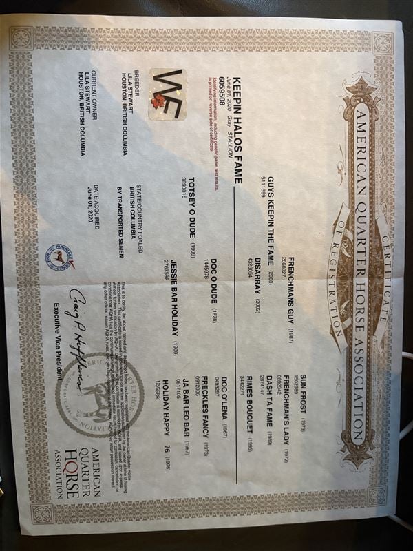 “Halo” is a well-started performance gelding with top-notch run and cow breeding. He is sired by a Canadian 1D pro barrel horse, a son of Frenchman’s Guy. His top side includes Disarray, a daughter of Dash Ta Fame. Bottom side adds cow and athletic ability as a grandson of Doc O Dude, son of Doc O’Lena. A proven run × cow cross built for speed, rate, and versatility.