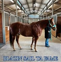 He's perfect for a rider with goals looking for a partner not a pet. He’s a great step-up horse for someone ready to learn and adapt to his style. Wrangler taught me how to run and he was an incredible teacher. The better I rode, the faster he got, and he always took care of me. He will only run as fast as you can ride him — he’s not the kind to give a 4D rider a 2D time.