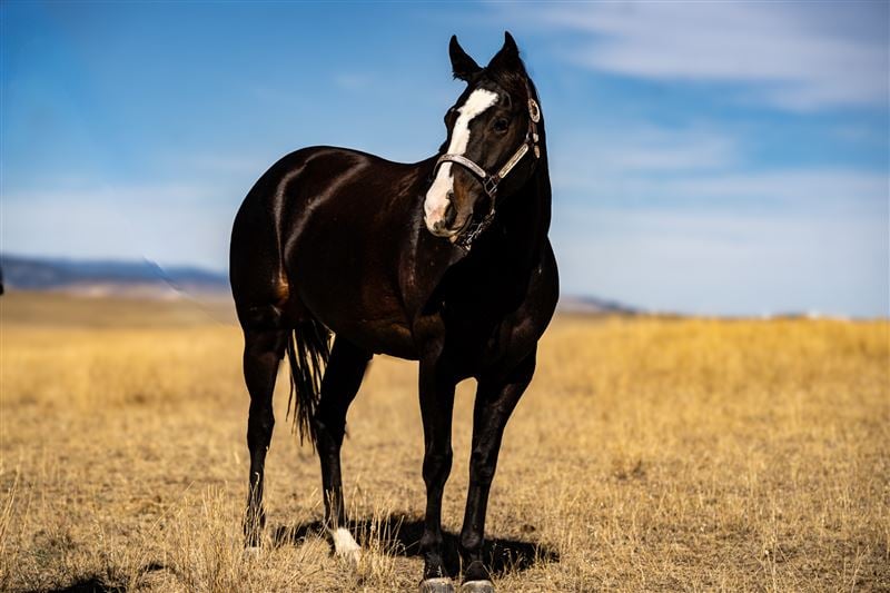 Out on the ranch, Frankie is just as solid. She’s been used for all the jobs—roping, doctoring, pairing out, and riding in the mountains. She crosses anything, tracks cattle naturally, and is happy to go to work every day.