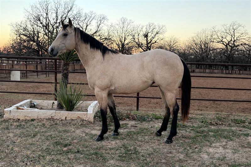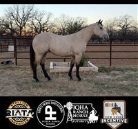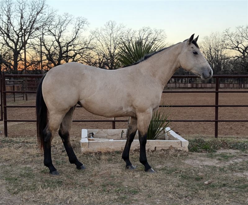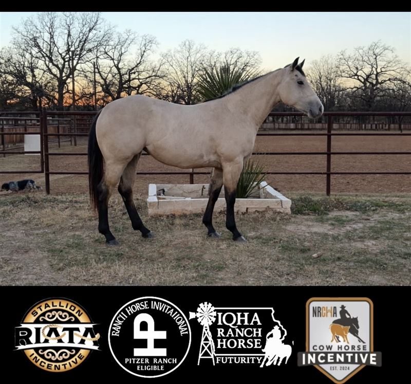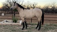 Really cool cow/run cross filly. Beautiful , athletic, and started right on the head side—will excel in rope horse futurities. Also a solid barrel prospect with big broodmare potential down the road. Great in the box.