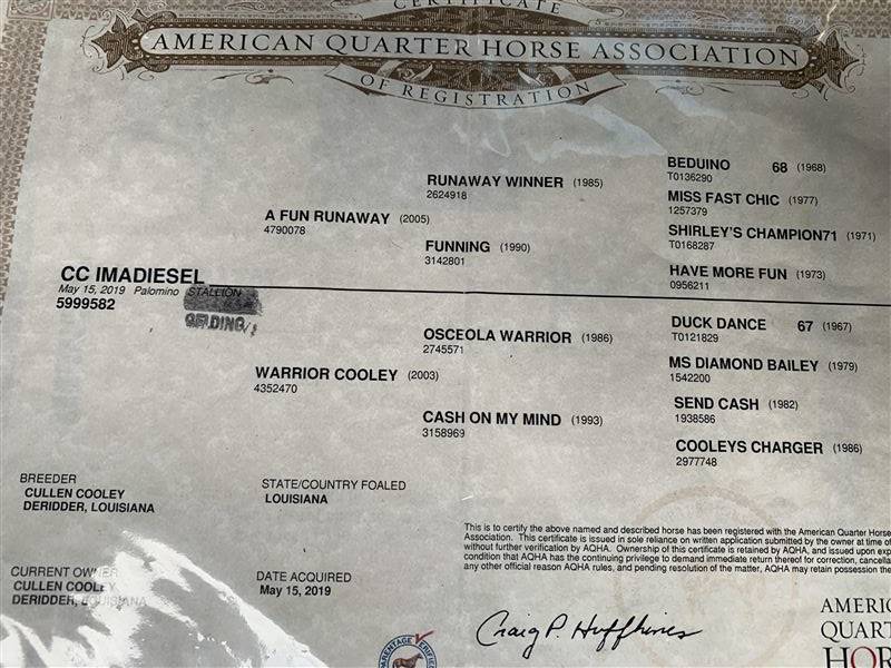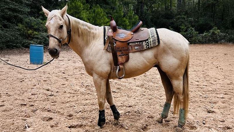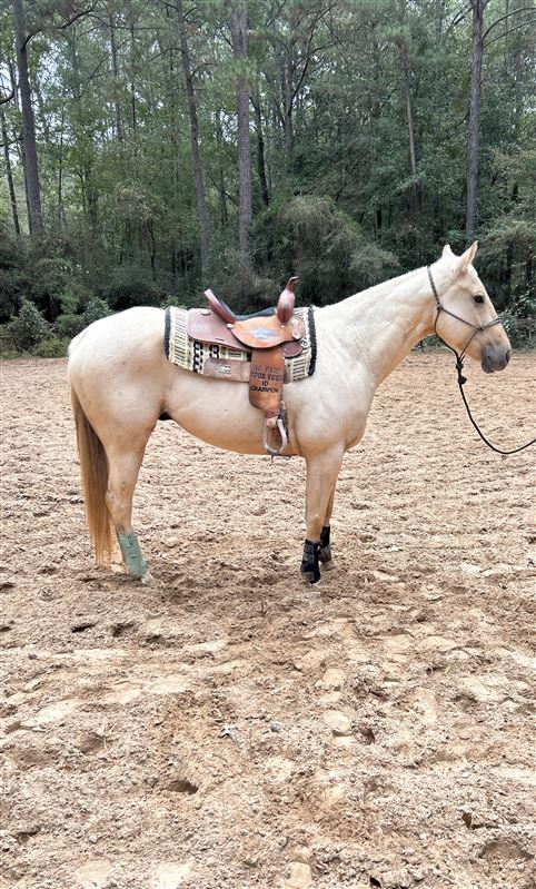 CC IMADIESEL is a big gorgeous palomino gelding with a big personality! He stands about 16 hands, has nice lope and a big stride when asked. Diesel has been running 2d/3d at local jackpots off and on for the past few yrs but due to his owner in college he’s been on the back burner. Diesel has all the potential to be someone’s number one. Diesel is currently consigned with me and will be ran till sold. This guy is not one to miss. Located in Montgomery Tx $23,000