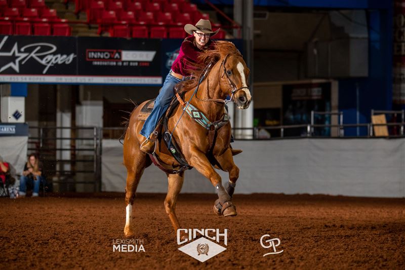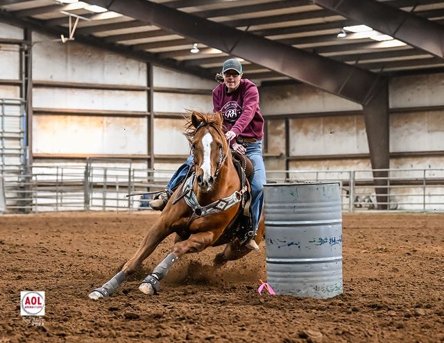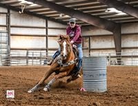 Push style on the barrels. Drive him to his spots, sit and let him work. Would make an amazing JH/HS/College rodeo horse. He loves the rodeo atmosphere.