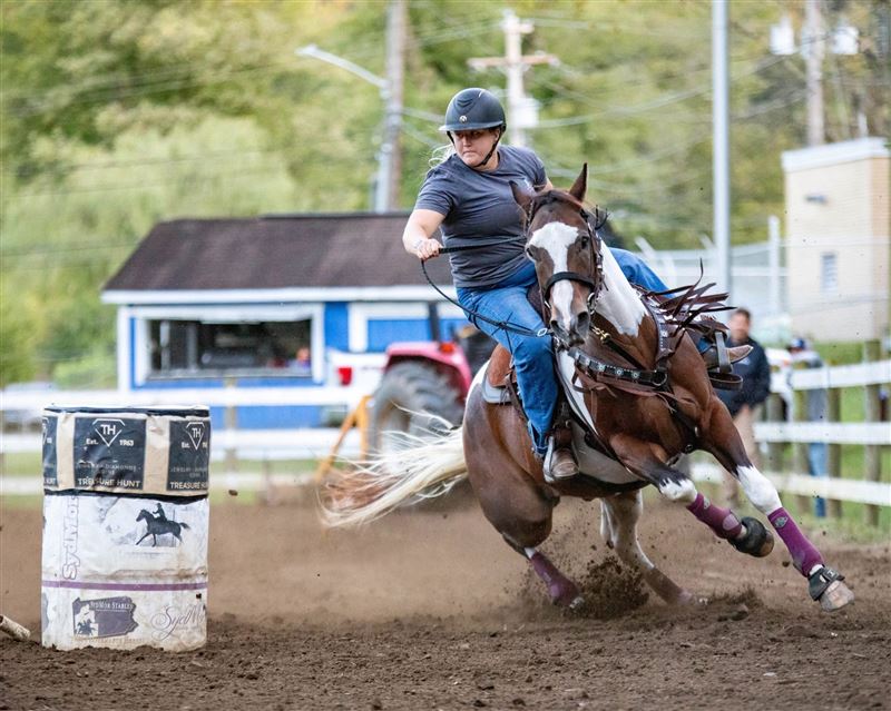 Max has been running locally in Pa, Ohio and WV the majority of his life. His nickname is King of the 4D but has hit the 3D at times. He is super consistent and runs the same pattern every time. I can count on one hand in the past 2 years of owning him how many times he has not been in the money at shows or has hit barrels. His previous owner has the same story.