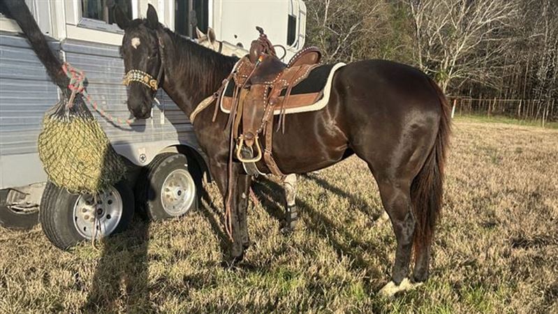 Jetta is the coolest mare that anyone can ride!! She is so easy and practically automatic to jockey. She does not hit barrels and will take care of any level rider. A beginner jump rode her at the KK run for Vegas and was just out of placing there. She will give anyone confidence to win. She has set arena records, run 15.3s at Waco and currently clocking with some of the best rodeo horses in Tx. She loves the rodeo scene and would great for anyone to take on the road. She hauls great, doesn’t get nervous or ulcery. She is great by herself or with others. She runs poles and will do straights.
