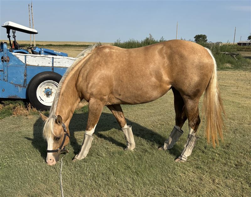 Jewel has many great qualities she runs barrels, poles, flags, trail, and been used to pen back at the sale barn and really watches a cow. When Jewel was 4 she was ridden by Scarlett who was also 4 but don't let the age fool you she has some go. Jewel has very limited stats because they didn't haul her much at all. Rides bareback, shoes and loads in a trailer with ease and on top of that she is gorgeous.
