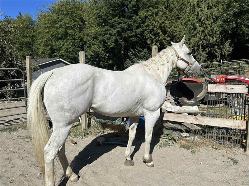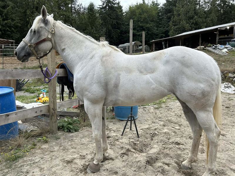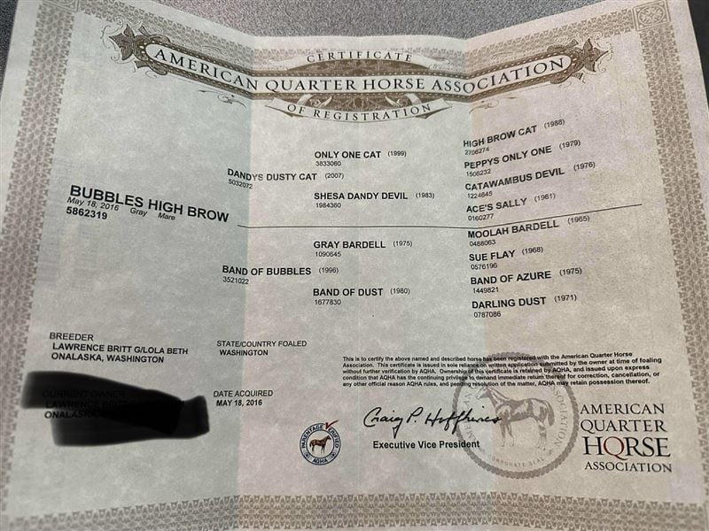 Hartley is wonderful to be around, and great with everything you ask, hauling, farrier work, vet work, etc. She is good to be around other animals, cattle, goats, dogs, etc.