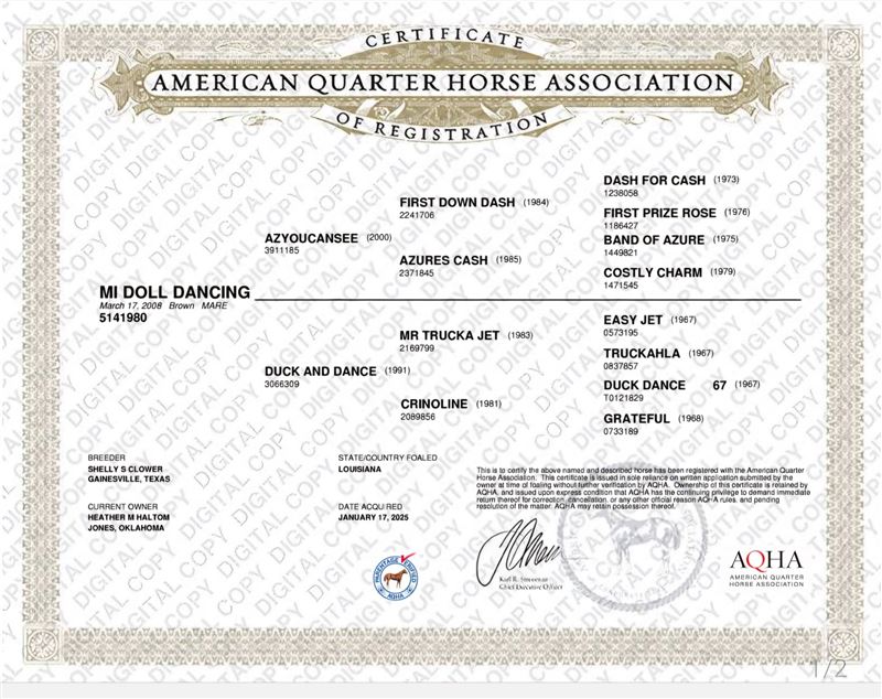 | Dam's Sire: Mr Trucka Jet | Dam's Sire Sire Easy Jet |