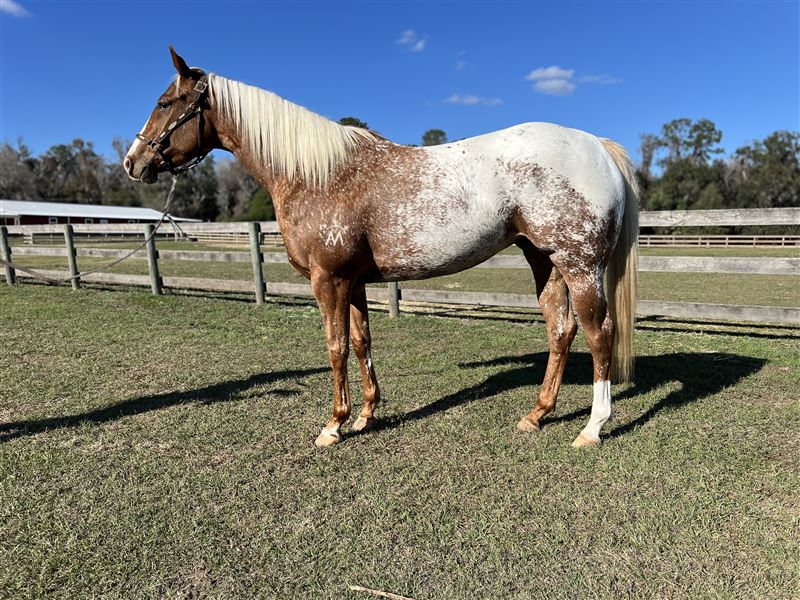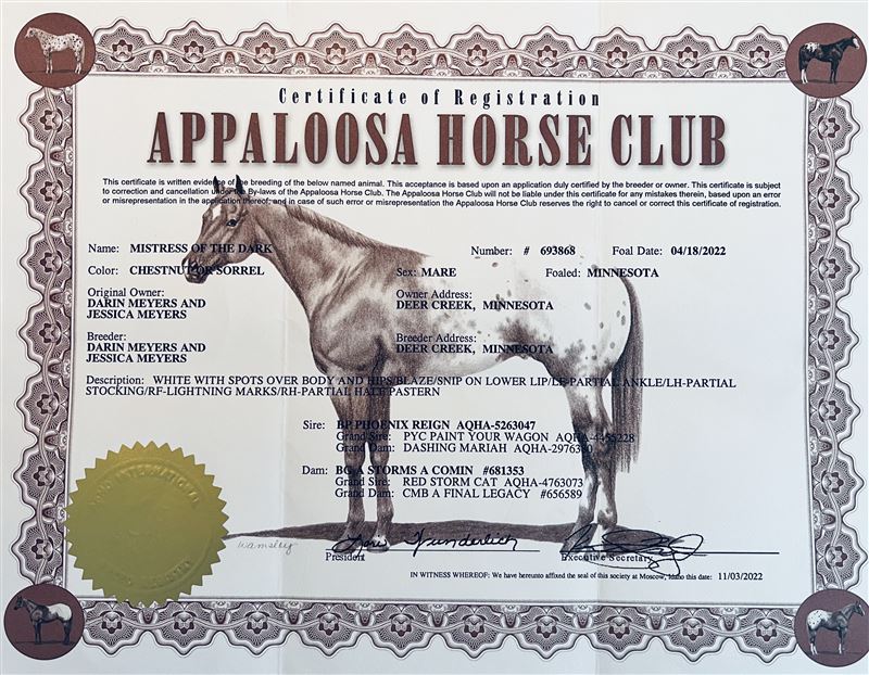 Mistress Of The Dark, a talented coming 4 year-old Appaloosa with serious speed and a bright future. In just the first few runs of her career, she is already proving herself as a money earner and is fast, gritty, and ready to rumble.