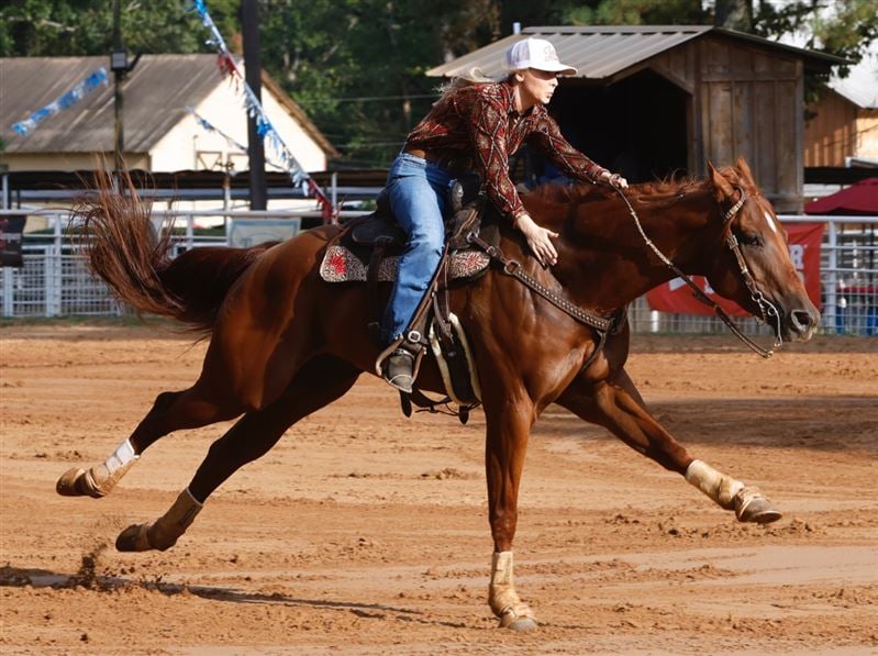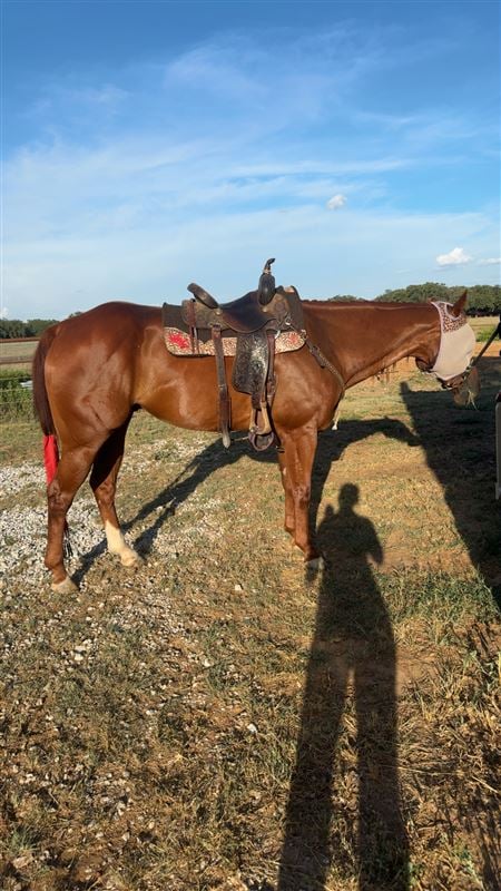 Hash Brown is a 2D/3D gelding that can easily be in the 1D. His sire is Valiant Hero with over 600k in track earnings and his progeny earnings in barrel racing is 1.6 million. His Dam is a NFR qualifier, and NFR round winner, he has all the potential one can have. He is originally from the Judd Little Ranch. He has the speed, I just haven’t been able to keep him legged up and going consistently while being in college, due to those reasons I am offering him for sale at a good price to get the chance for him to excel in someone else’s hands. You can slow work him all day he will NOT get hot! That being said he has no alley issues! He is youth suitable but is competitive up to college level. I ran him at Martha Josey’s in September and won Reserve Champion, and he’s placed in the 2D/3D at local jackpots without consistent riding. Stifle injections 1x a year, he does not run on Lasix or anything, I do give him ulcer prevention if we stay at a rodeo overnight, and run multiple days in a row. I haul him alone for the most part, but when I do haul with friends he gets along with everyone! Come try him! Any other questions contact me - 254-459-1922