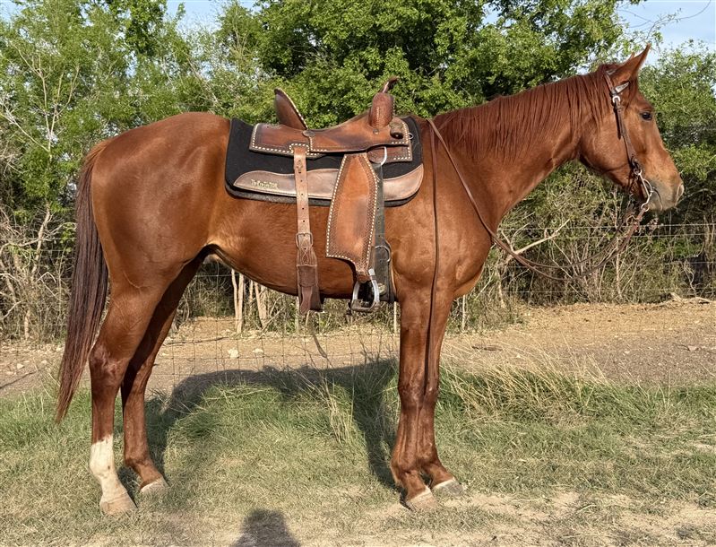 NEW FULL VIDEO!! If you are looking for something young to bring along with a phenomenal mind, Cheech is your guy! He already stands 15.2 hands as a 3 year old and is all there! He does everything a good youngster should and would be safe and suitable for even a youth to finish out. Cheech has been ridden all over the place already. He has a great foundation that will serve as the building blocks to everything he experiences and is faced with for the rest of his life. He stands tied quietly, leads, loads, will pony or can be ponied off of, goes on the walker, etc. Under saddle he is confident and truly just wants to please. He has been ridden in town and is traffic safe, he has been on the trail and navigates challenging terrain with ease, he will go through water, over and through obstacles, carries objects, and has been introduced to a number of scenarios to build his understanding of the world and things he will face. Cheech is good in the herd or stalled. He is easy to catch and has a fun loving old soul personality. As of right now, he is more whoa than go which makes it incredibly easy to teach him new things. He doesn’t get flustered and has never told me no. These are my favorite kind of horses because they come along smooth and steady until they are ready to add speed. He lacks no speed or athletic ability and is bred to shut the clock off. If I was looking for a rodeo horse, he would never leave. He is not going to be flustered by the hustle and bustle and seasoning him will be a breeze! Get on, ride, and HAVE FUN! The hard work is done.