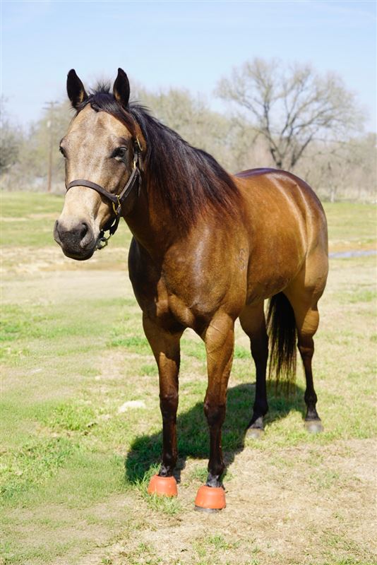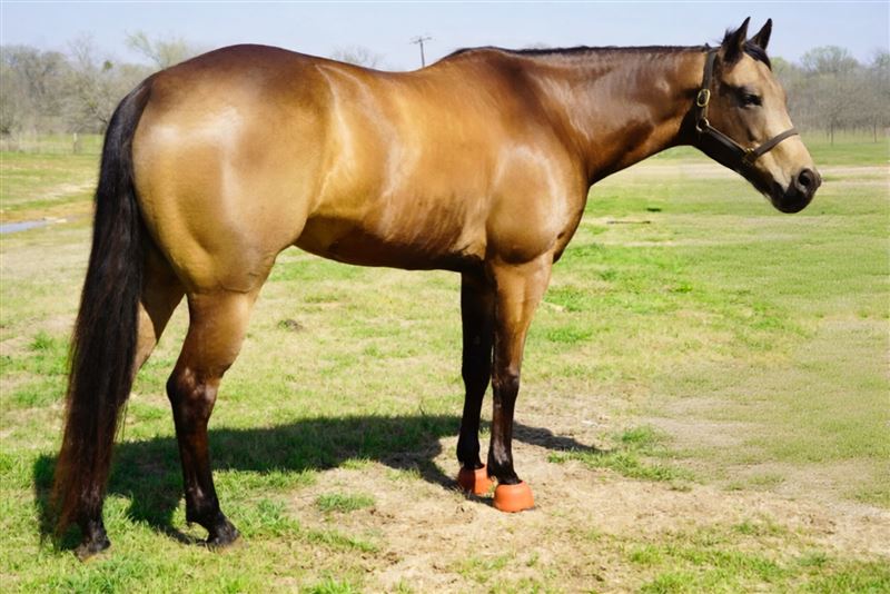 Hassey is one of the coolest mares! She’s a beautiful buckskin by Traffic Guy and is a winner on all levels. This past year she was just getting seasoned and placed at several big rodeos in Texas. These rodeos were CPRA’s and can be tougher than the pro rodeos. She handles the rodeo scene great. She has also ran at major pro rodeo pens and placed consistently in the 1D there like Rosenberg and Hempstead. She consistently and currently runs 1/2D and would be easy for anyone to jockey! Hassey is very simple just point and kick and she does the rest, I think a youth jockey would have no problem riding her. She is paid in to all of the major incentives that Traffic Guy is in. She has not been ran a whole lot, and has been brought along slowly. She has a lot more to give and has potential to be a really great pro rodeo horse. Hassey is sound has gotten very basic maintenance. She X-rays clean and has no issues. She does not require any meds to run.