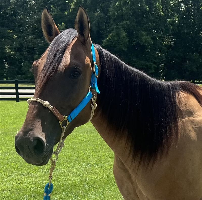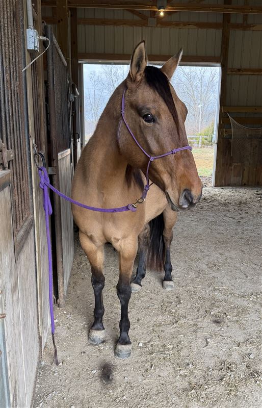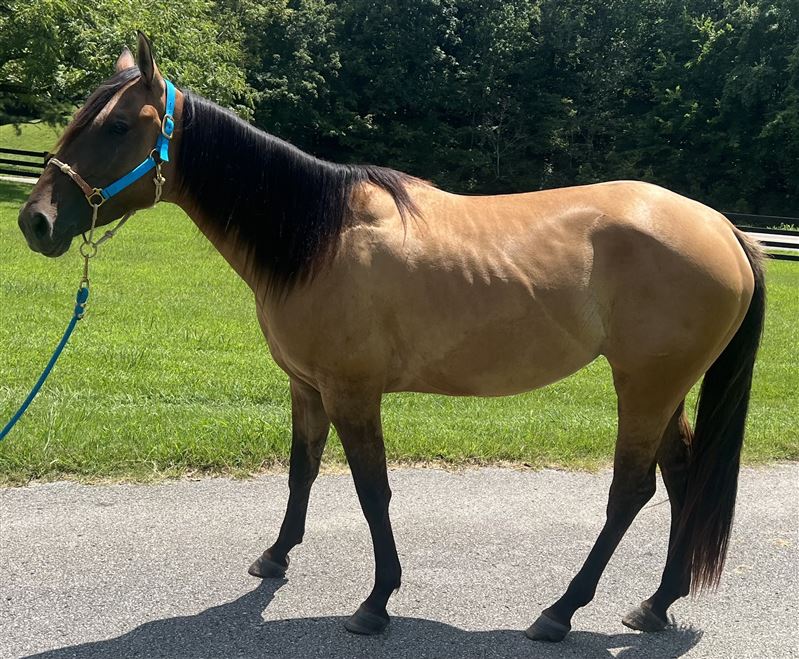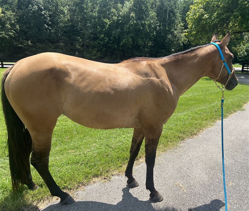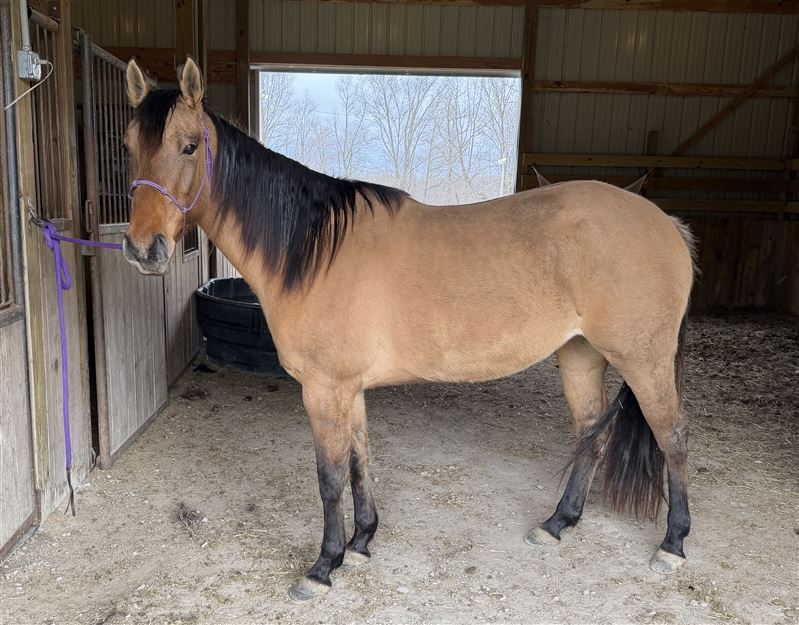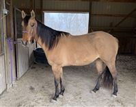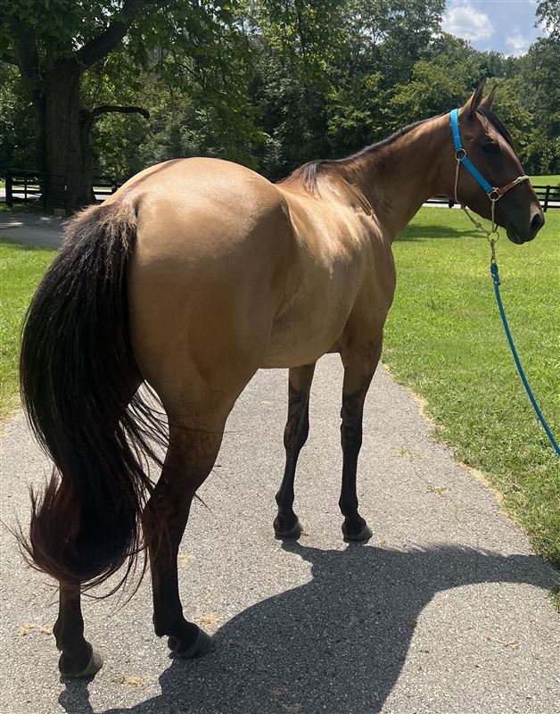 4 yr old dun filly, Im Just Golden aka Mocha. 15h Spent 5 months at the colt starter and had 6 weeks of barrel training after that last year. But has sat since October due to me having a baby. So she will be a little fresh, not a bronc but maybe a few crow hops during the first ride. If she is rode regular she is fine. She has a good foundation. Was slow loping the barrels and started on poles. She needs to be finished. Very in your pocket type and easy to catch. Full of personality. She can be a little spooky in new places but overall no bad habits besides just being young and not being rode in a while. By Just Fire, not enrolled in any incentives. Doesn’t have to go, but I think she has a little too much spunk/ too young for what I’m wanting right now after taking a break from riding. I rather ride my older seasoned mare. No trades except for I might do a partial trade for a breeding to a local stud. Nothing valued over $1200.Price reduced until she is sent for a tuneup this spring. I have videos from colt starter and when she was started on barrels but nothing current. Summer pictures were taken in August and winter pictures are current taken 2/22. Text for more info or any questions. If you want to call please text first. Cookeville TN Asking $8000 but will listen to all reasonable offers. Really want to sell now instead of having to send her for a tuneup and trying to sell for a higher price. I’ve raised her from a baby and raised and ran her dam. I can tell you anything about her. She will make a good one I just don’t want to deal with a young one that needs seasoned right now.