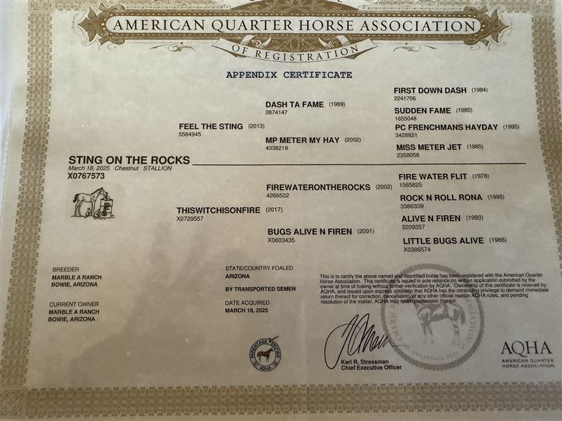Top and Bottom of papers are very strong...You can't go wrong with Both of the studs top and bottom. On the bottom of papers Bugs Alive N Firen is proven Rodeo winnings and has produced offspring 1d and open rodeo winnings.