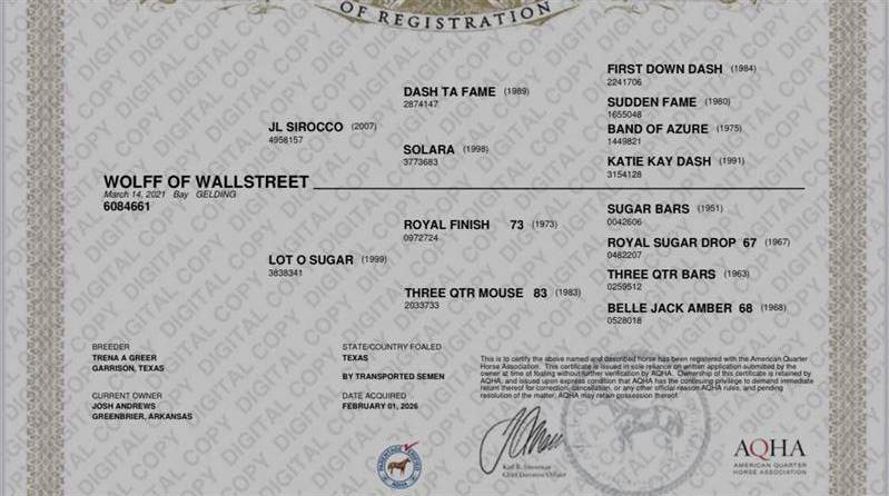 By the incredible JL SIROCCO out of Lot O Sugar, 1D producer.