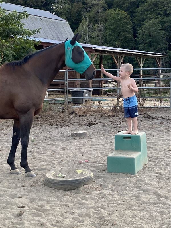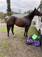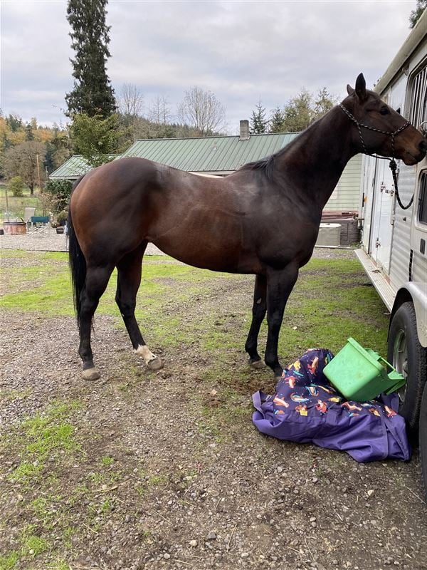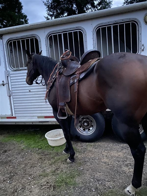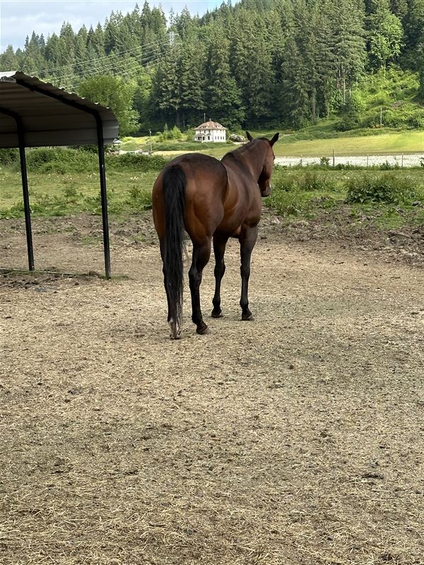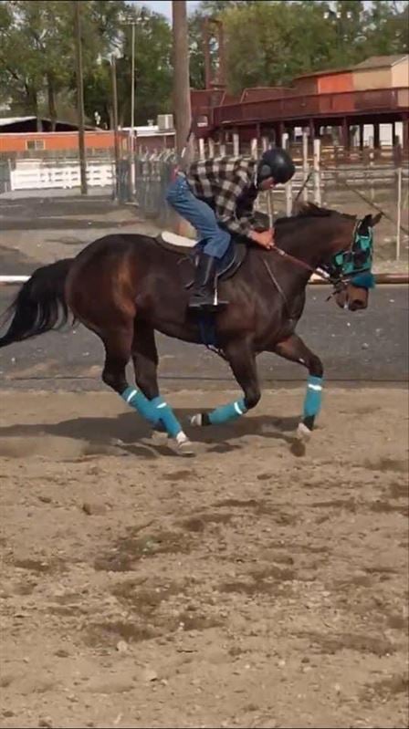 This mare is so nice and sweet she came to me off the track I settled her down and we did a lot of trail riding together and slow arena work. We ended up moving out of state to Montana and since moving I haven’t done much of anything with my horses. She’s just been sitting the past two years. I think she would be excellent in someone’s breeding program. She has not been bred. She won a couple races and is really built correct. She is fast. She is for an intermediate rider. No beginners. Possibly a really handy youth / teen.