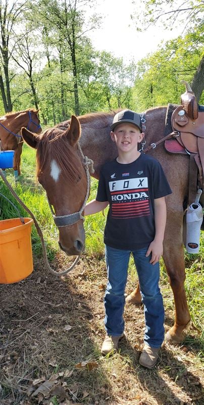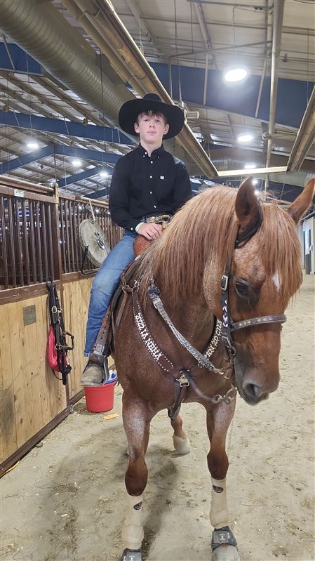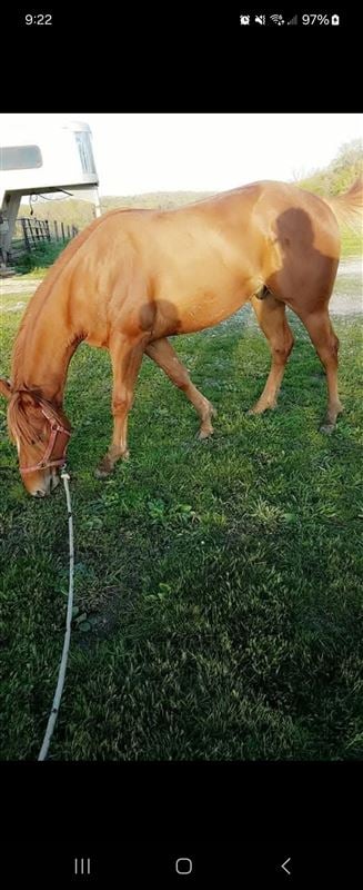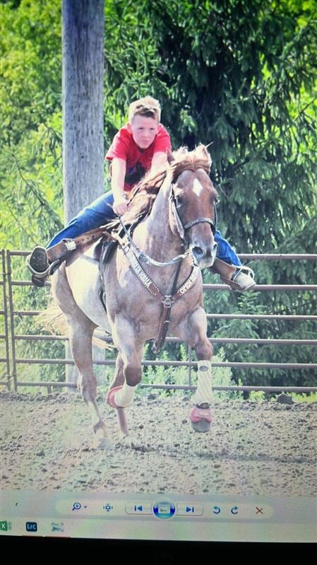 2008 Model, appendix bred, red roan mare. 15.2 built like a brick shit house. Tons of bone.