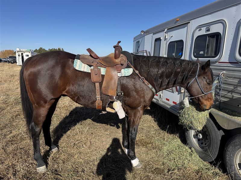 Offering Don Won Chema aka “Chema” 2012 AQHA Bay Gelding, around 16.3hh He is a finished barrel horse and was a solid 1D/2D horse years ago. I have no doubt he could be again with the right rider. I have not done him justice for what he’s capable of by any means. He is insanely fast. Absolutely no buck or rear. He has a motor, but very controllable. He has some quirks, as he spent time on the track. Full disclosure: He is a cribber and it is controlled with a collar or if he is turned out. He also requires a fair bit of maintenance including, hocks, stifles, left hind fetlock, wedge shoes, and ulcer meds. I also do regular chiro for him. I’ve had his SI injected as well. I do not guarantee this horse to stay sound and his price reflects that. He is currently sound, but will need legged up. Price is OBO. Open to offers! Will consider trades also. I love this horse and hate to let him go. Runs at the end of the video are from previous owner. Please text for more info.